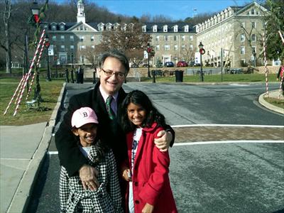 2011: Manuel with his daughters Rosa and Maria at Mount St, Mary’s University