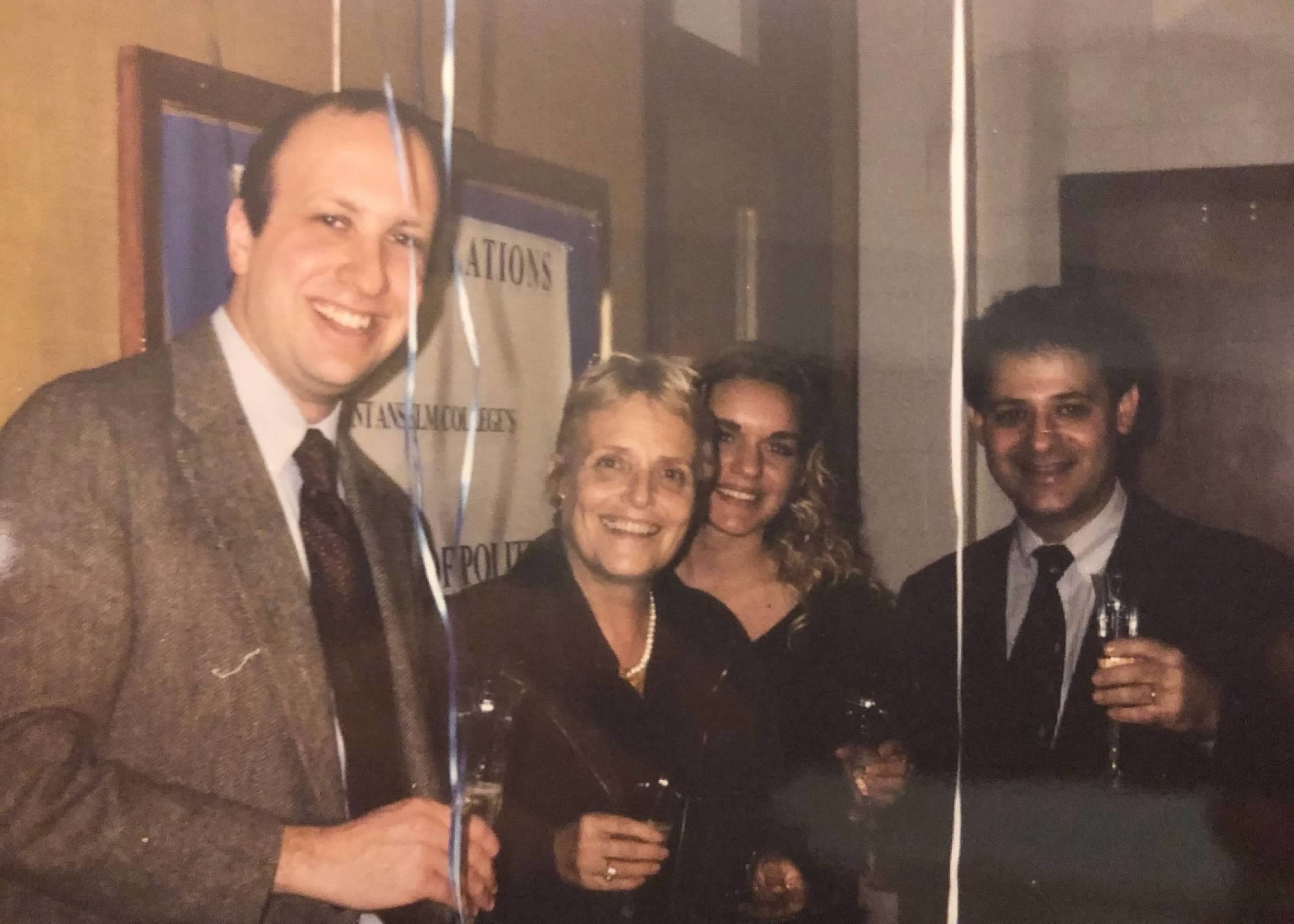 1999: Dante Scala, Barbara Baudot, JoEllen Saeli-Lane and Paul Manuel celebrating the first $2 million grant for the NHIOP in the Politics Department, then located in the basement of Gadbois Hall