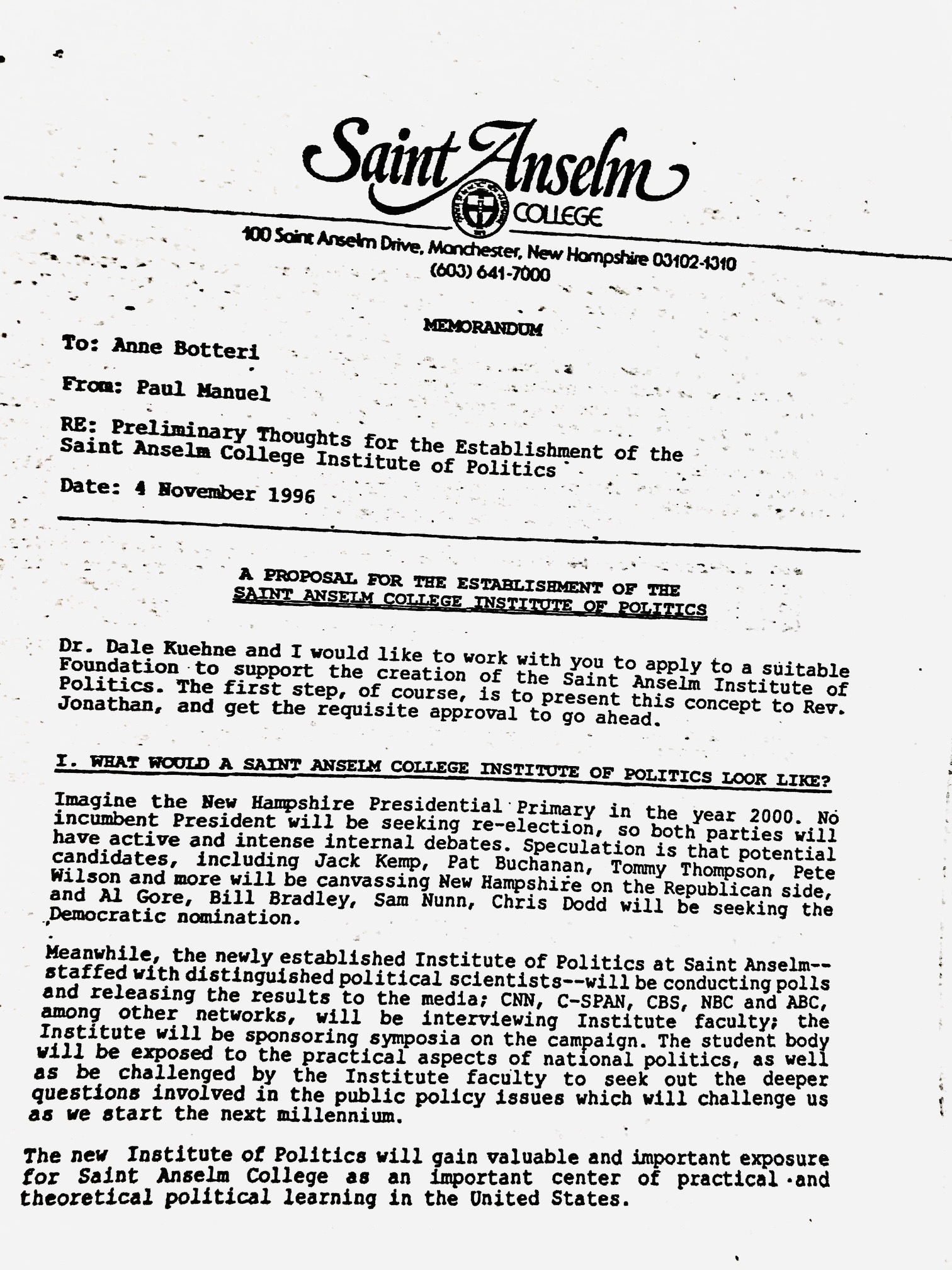 Original 1996 Memo for the Creation of the NHIOP