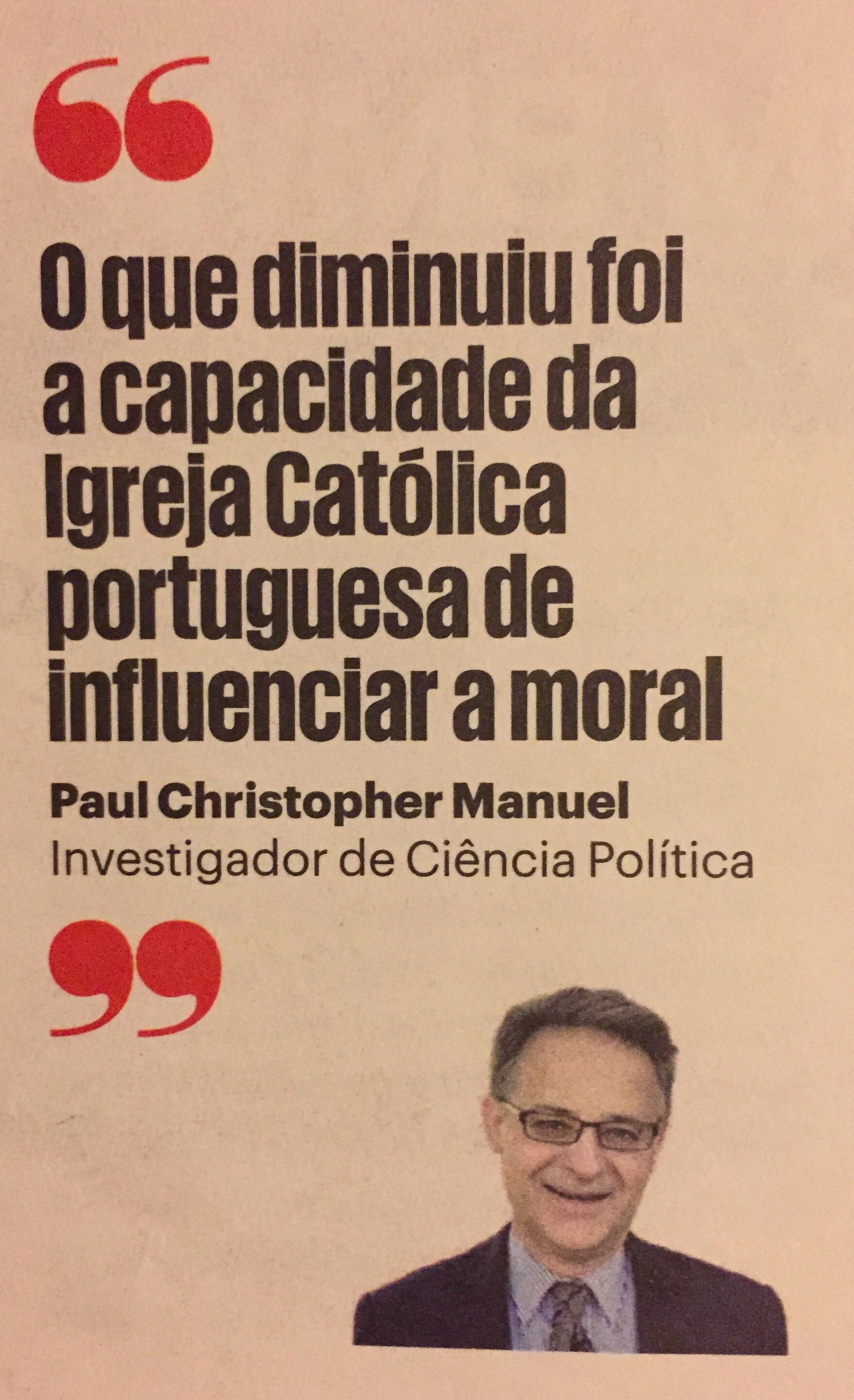 - 2015: Paul Manuel was interviewed about the Catholic Church and democracy in Portugal by Publico newspaper, Lisbon